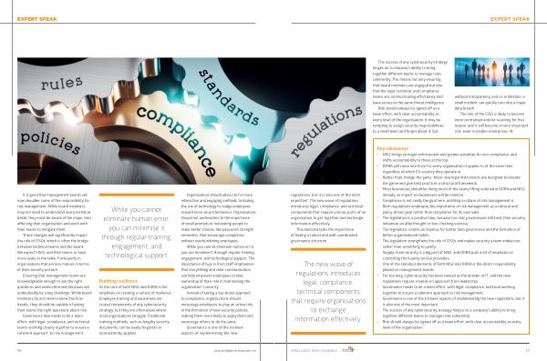 regulations , but it is also one of the most important . The new wave of regulations introduces legal , compliance , and technical components that require various parts of an organisation to get together and exchange information effectively .