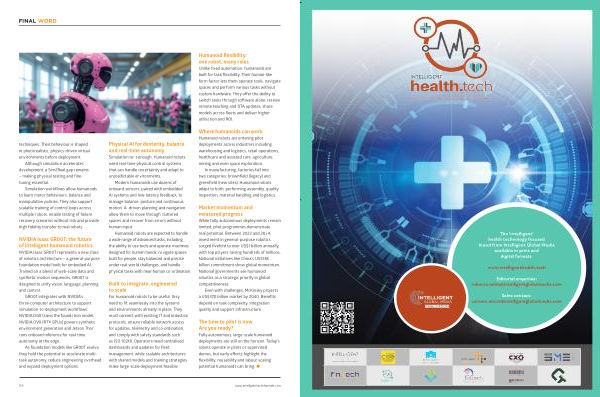 Fully autonomous, large-scale humanoid deployments are still on the horizon. Today’ s robots operate in pilots or supervised demos, but early efforts highlight the flexibility, reusability and labour-scaling potential humanoids can bring. •